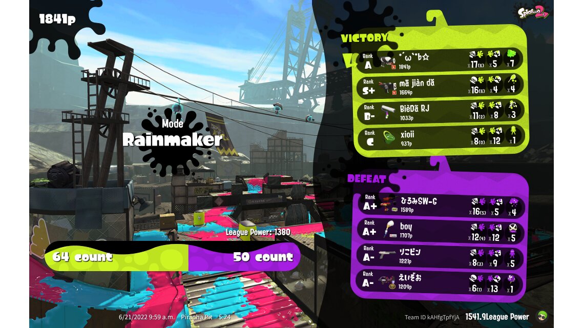 | Mode | Rainmaker - League Battle (Quad) | ||||||||||||||||||||||||||||||||||||||||||||||