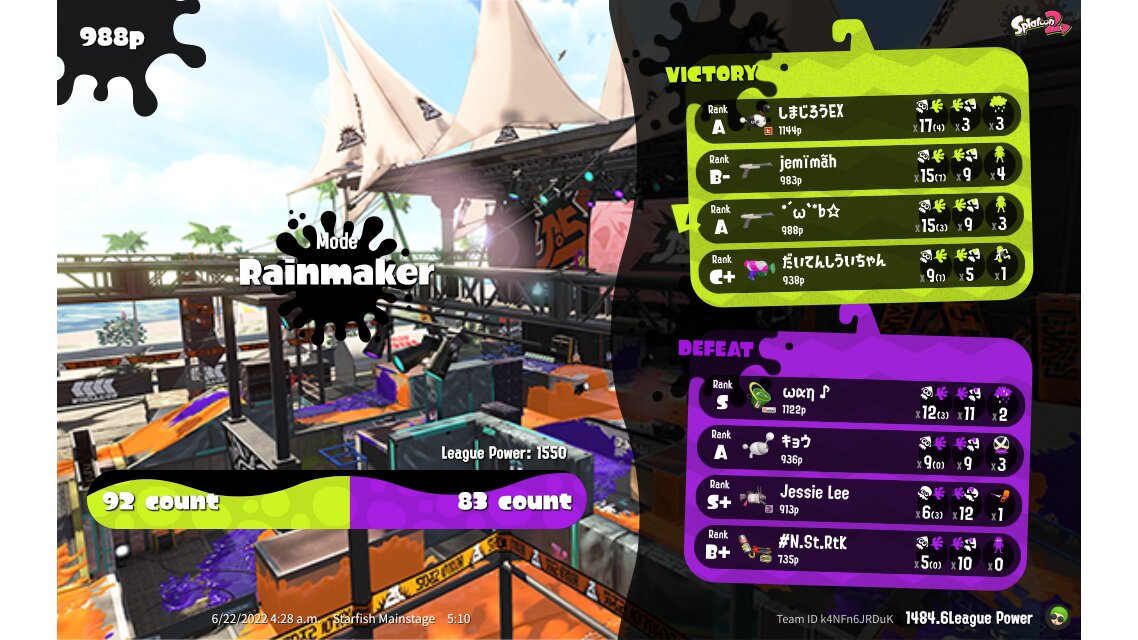 | Mode | Rainmaker - League Battle (Twin) | ||||||||||||||||||||||||||||||||||||||||||||||