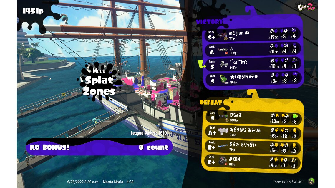 | Mode | Splat Zones - League Battle (Quad) | |||||||||||||||||||||||||||||||||||||