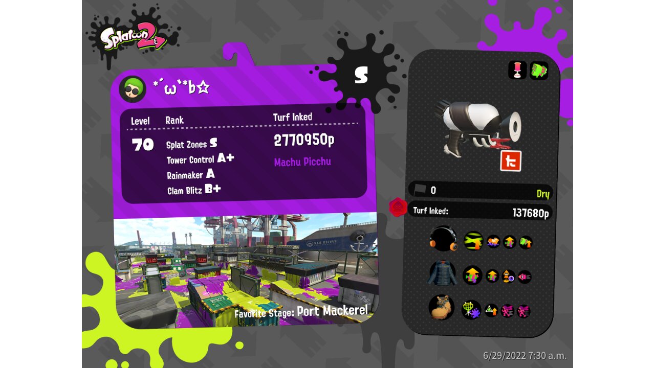 | Name | Weapon | Level | Rank | Inked | k+a/sp | k/d |