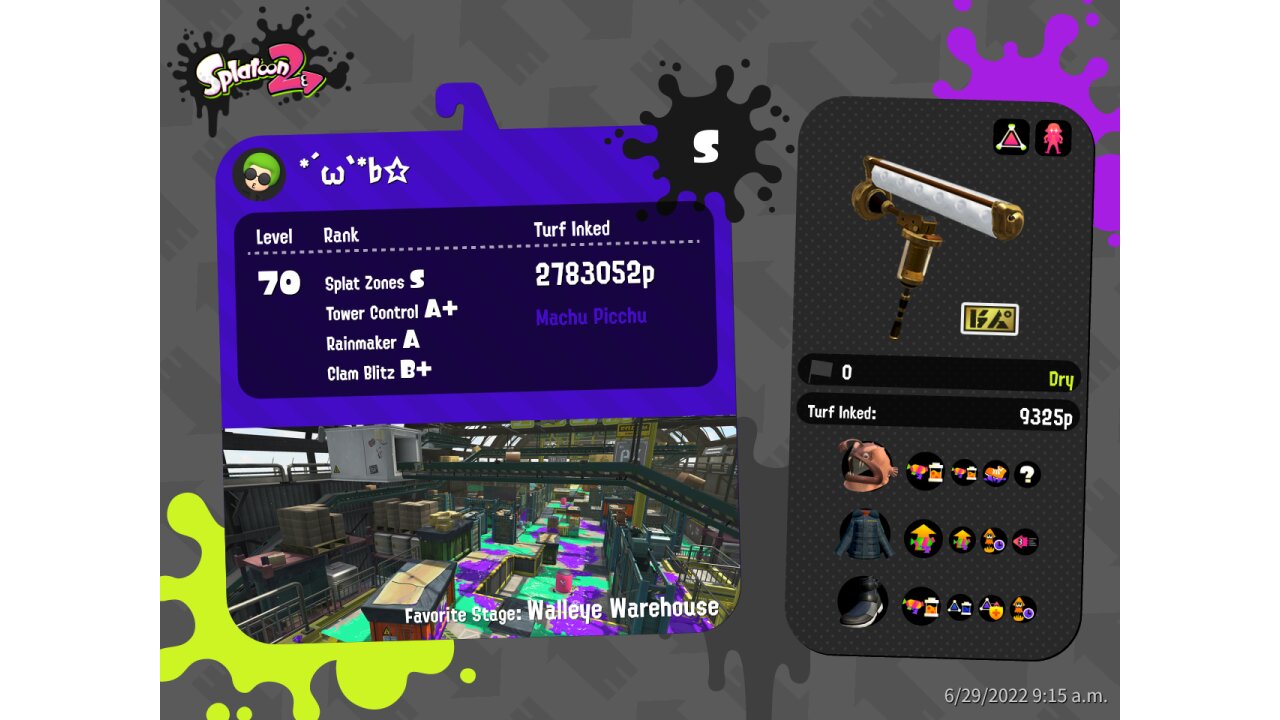 | Name | Weapon | Level | Rank | Inked | k+a/sp | k/d |