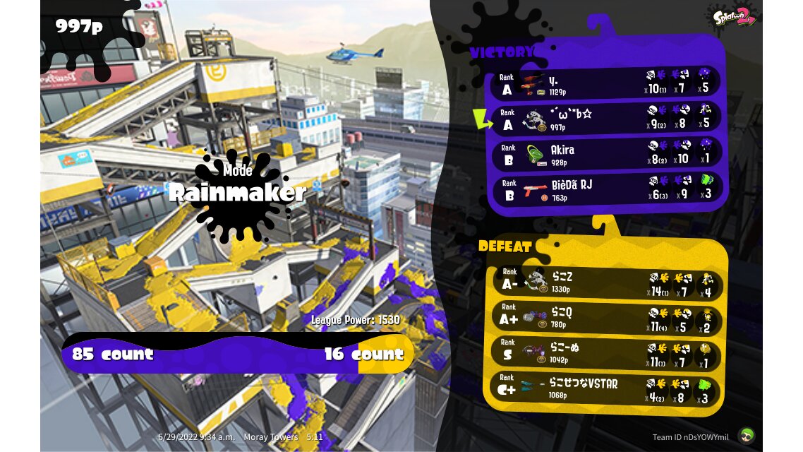 | Mode | Rainmaker - League Battle (Quad) | ||||||||||||||||||||||||||||||||||