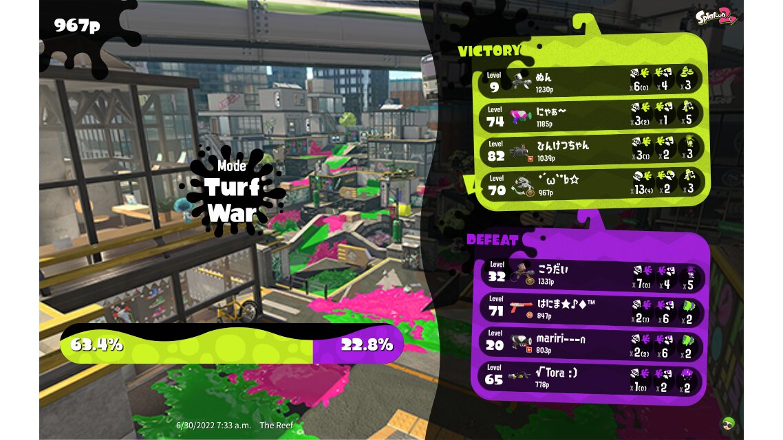 | Mode | Turf War - Regular Battle | |||||||||||||||||||||||||||||||||||||