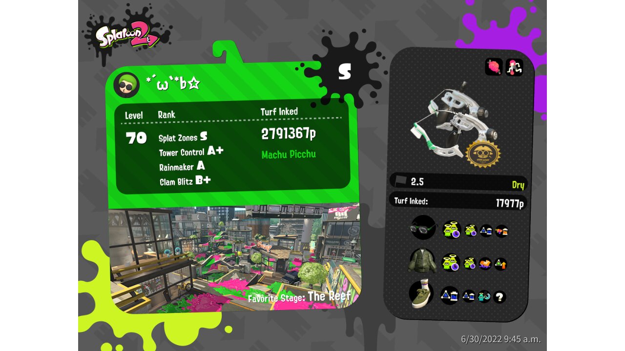 | Name | Weapon | Level | Rank | Inked | k+a/sp | k/d |
