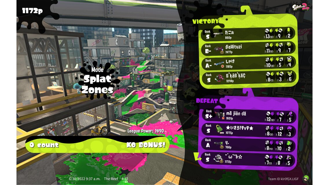 | Mode | Splat Zones - League Battle (Quad) | |||||||||||||||||||||||||||||||||||||
