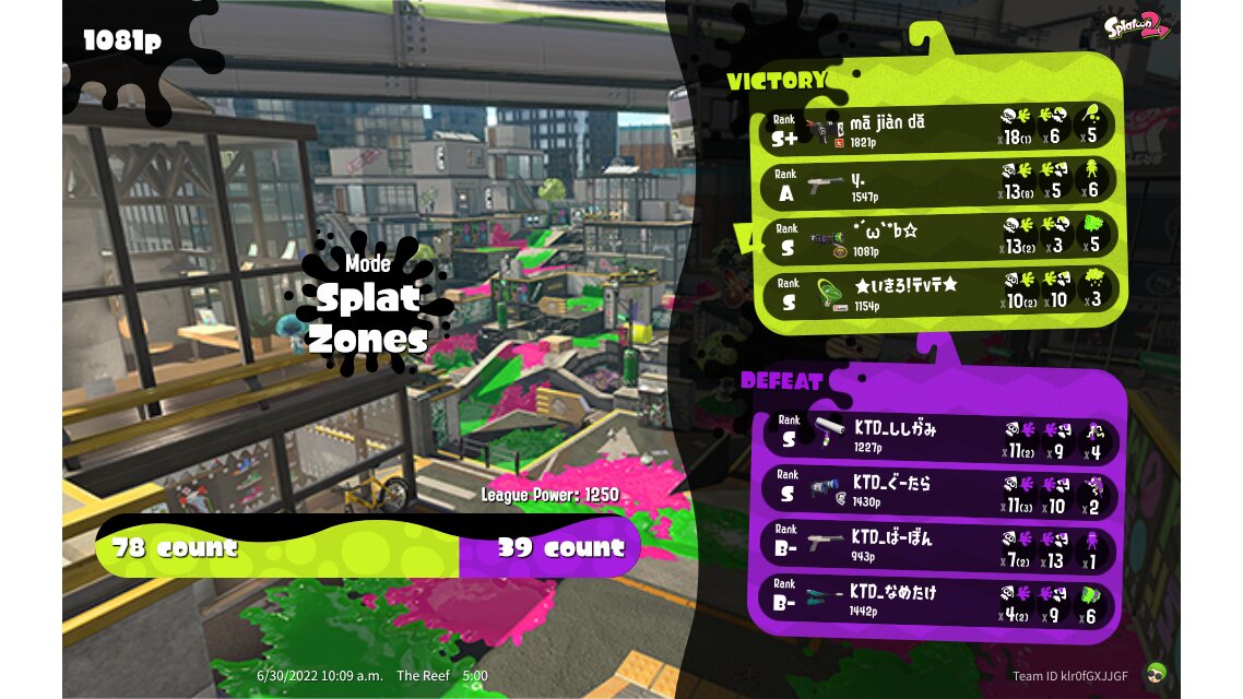 | Mode | Splat Zones - League Battle (Quad) | ||||||||||||||||||||||||||||||||||||||||