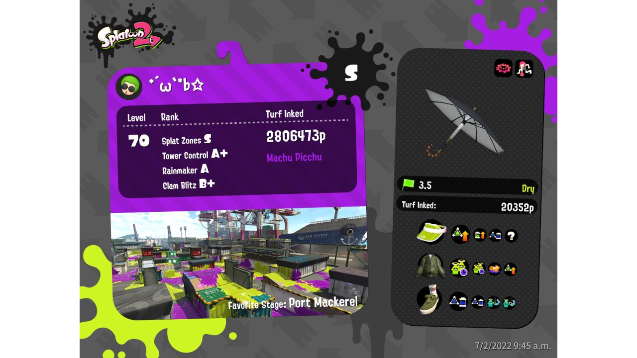 | Mode | Splat Zones - League Battle (Twin) | |||||||||||||||||||||||||||||||||||||