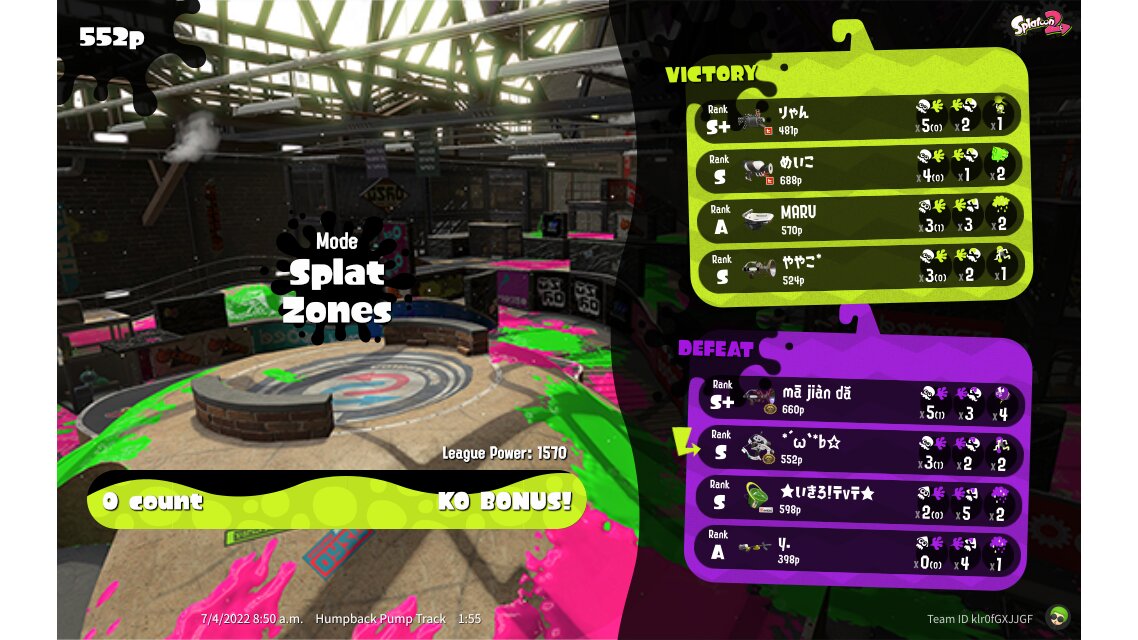 | Mode | Splat Zones - League Battle (Quad) | ||||||||||||||||||||||||||||||||||||||||||||||