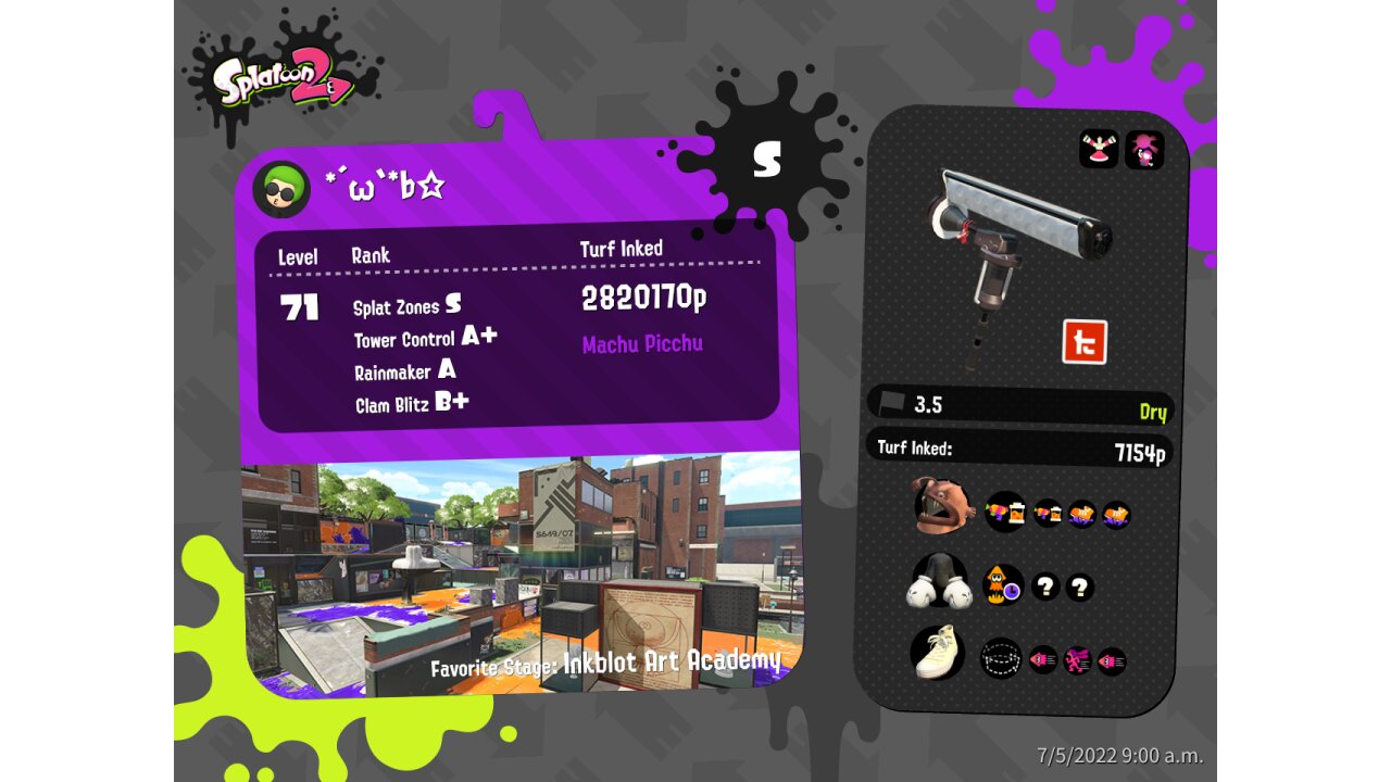 | Mode | Turf War - Regular Battle | |||||||||||||||||||||||||||||||||||||