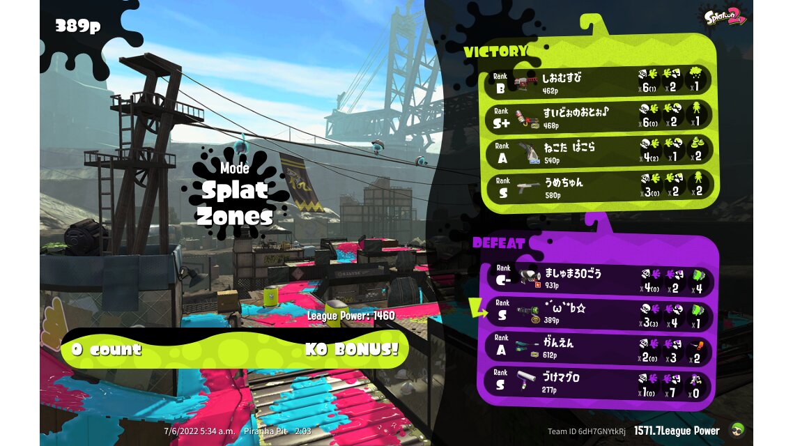 | Mode | Splat Zones - League Battle (Twin) | ||||||||||||||||||||||||||||||||||||||||