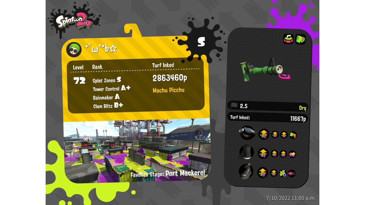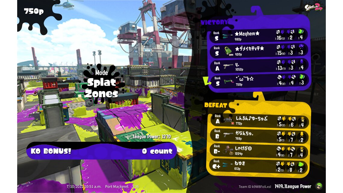 | Mode | Splat Zones - League Battle (Quad) | ||||||||||||||||||||||||||||||||||
