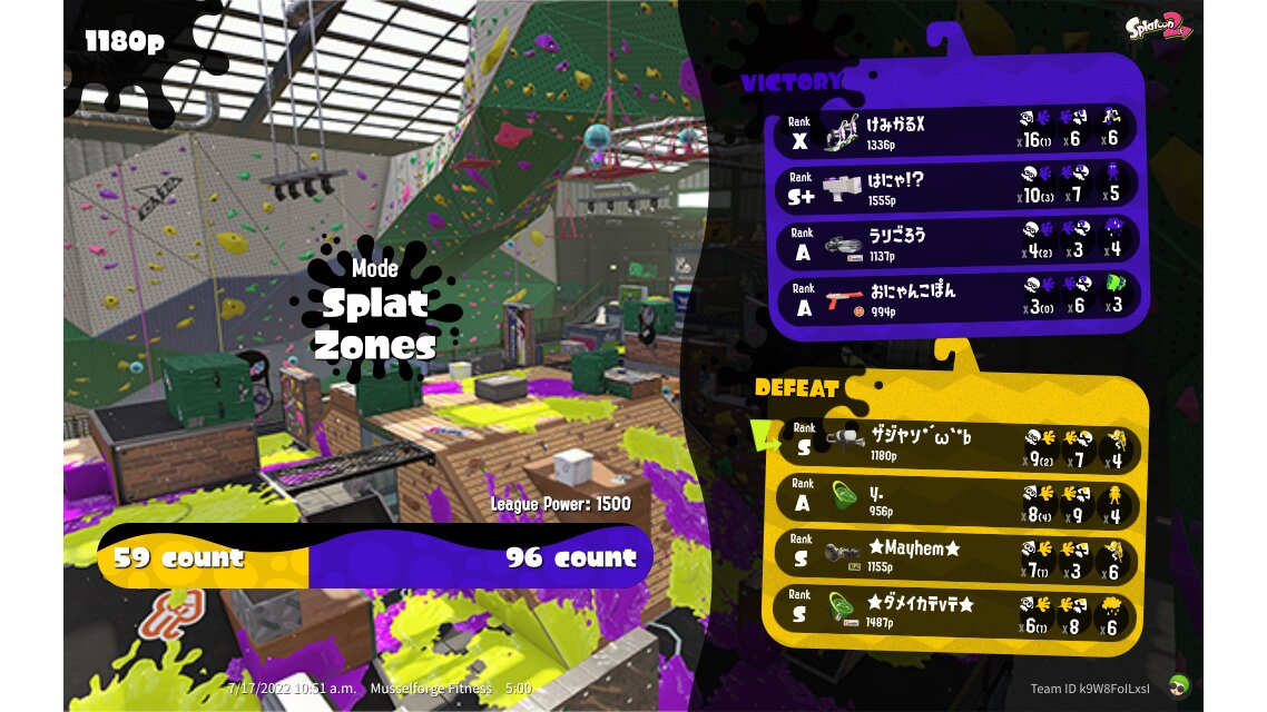 | Mode | Splat Zones - League Battle (Quad) | ||||||||||||||||||||||||||||||||||||||||