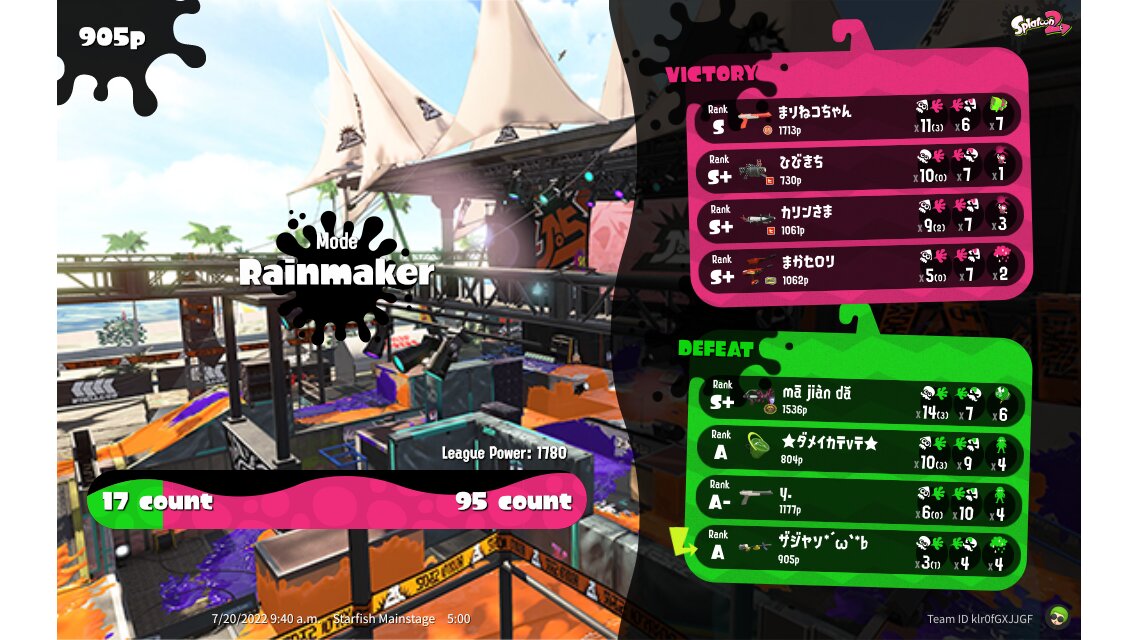 | Mode | Rainmaker - League Battle (Quad) | ||||||||||||||||||||||||||||||||||||||||
