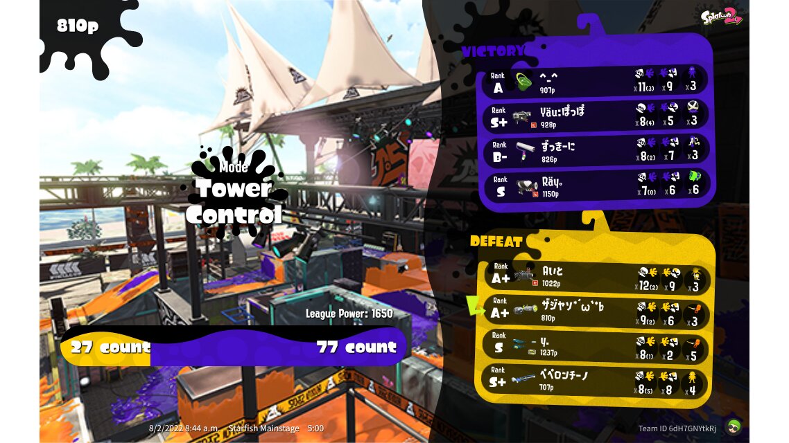 | Mode | Tower Control - League Battle (Twin) | ||||||||||||||||||||||||||||||||||