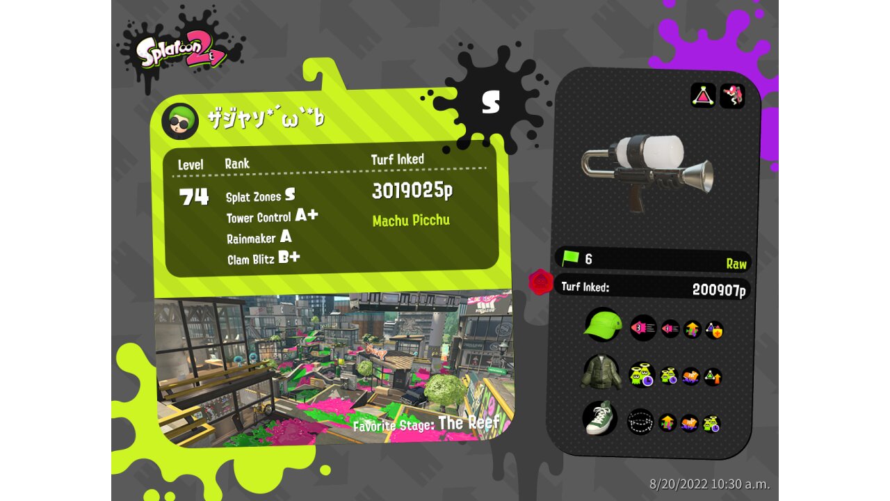 | Mode | Splat Zones - Ranked Battle | ||||||||||||||||||||||||||||||||||||||||