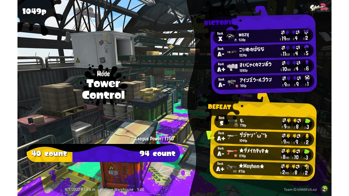 | Mode | Tower Control - League Battle (Quad) | ||||||||||||||||||||||||||||||||||||||||||||||