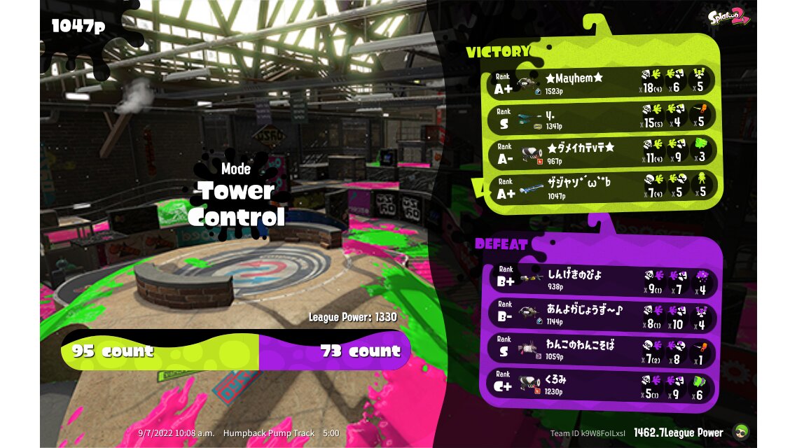 | Mode | Tower Control - League Battle (Quad) | ||||||||||||||||||||||||||||||||||