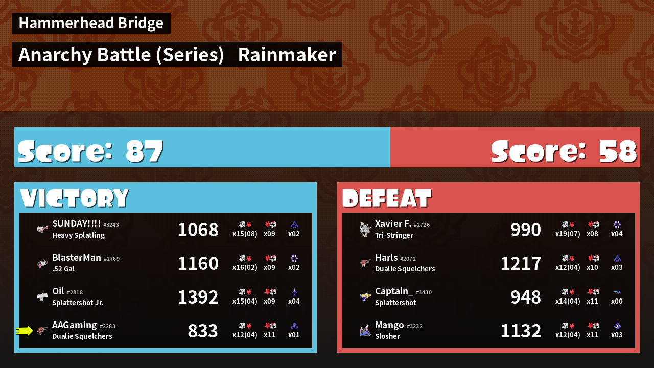 | Mode | Rainmaker - Anarchy Battle (Series) | ||