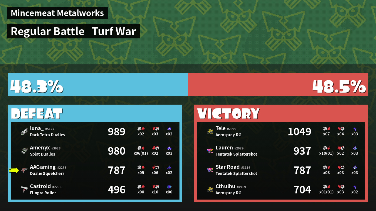 | Mode | Turf War - Regular Battle | ||