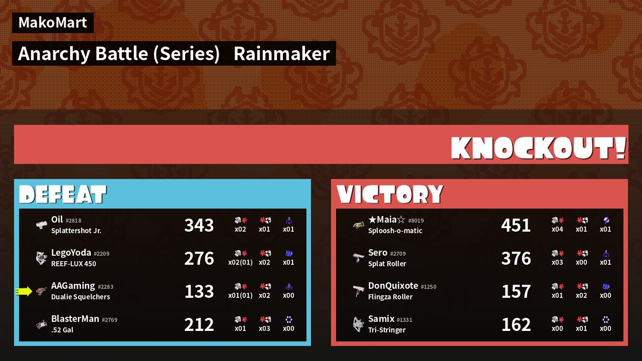 | Weapon | Dualie Squelchers ( Splat Bomb / Wave Breaker) | ||