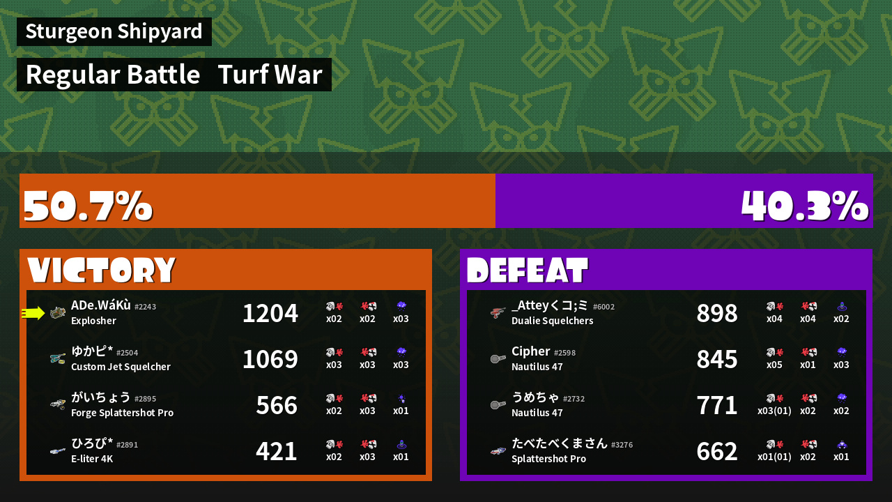 | Weapon | Explosher ( Point Sensor / Ink Storm) | ||
