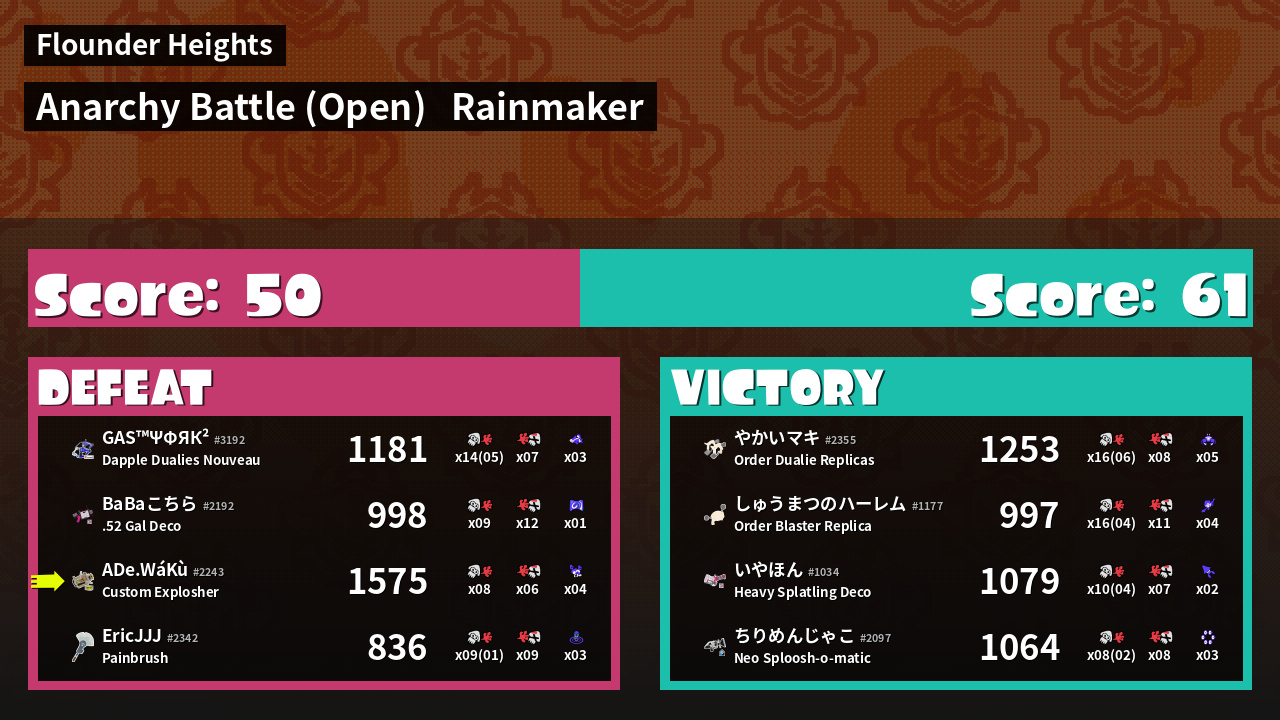 | Mode | Rainmaker - Anarchy Battle (Open) | ||