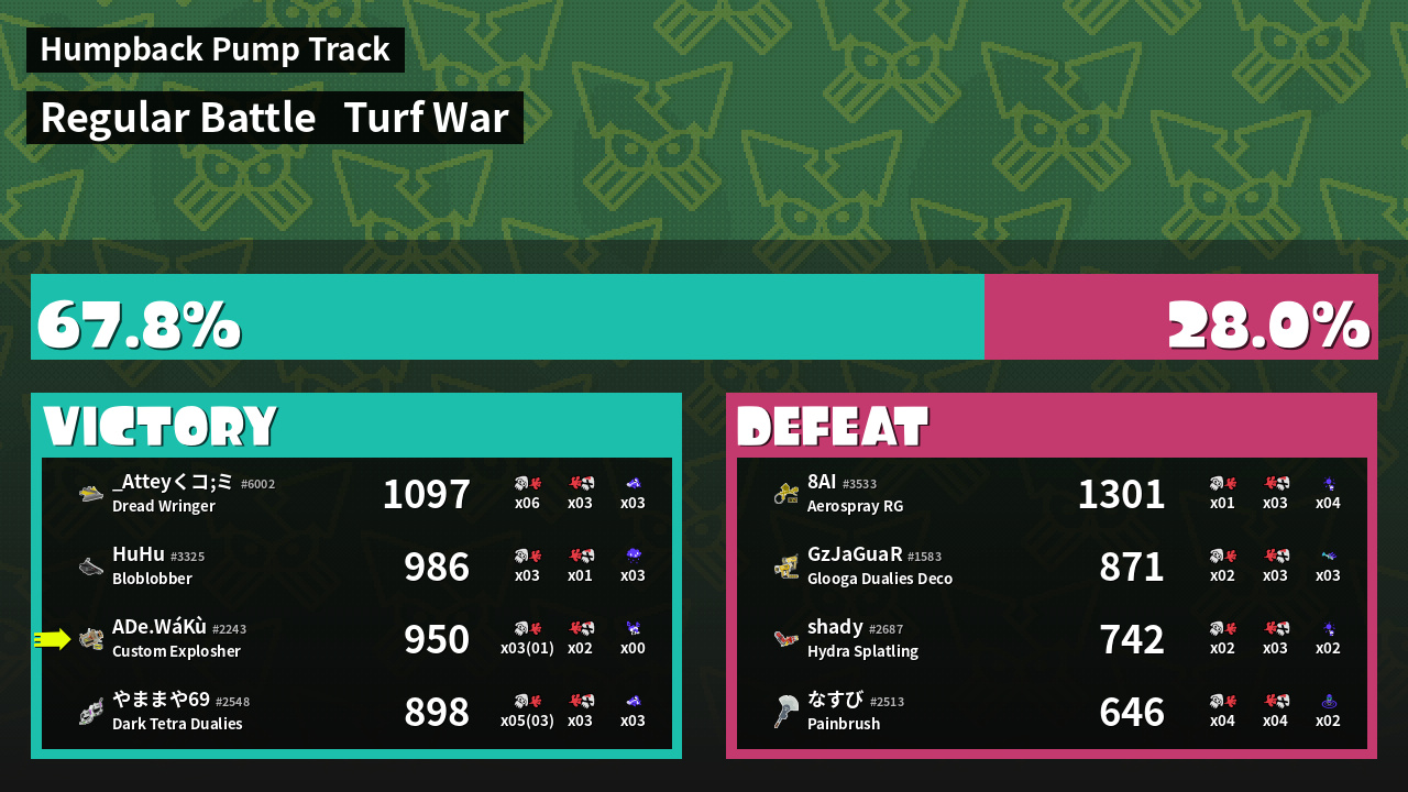 | Medals | #1 Home-Base Inker #1 Base Defender #2 Splat Assister | ||
