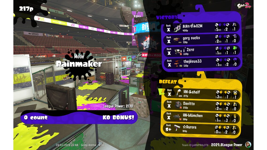 | Mode | Rainmaker - League Battle (Twin) | |||||||||||||||||||||||||||||||||||||||||||