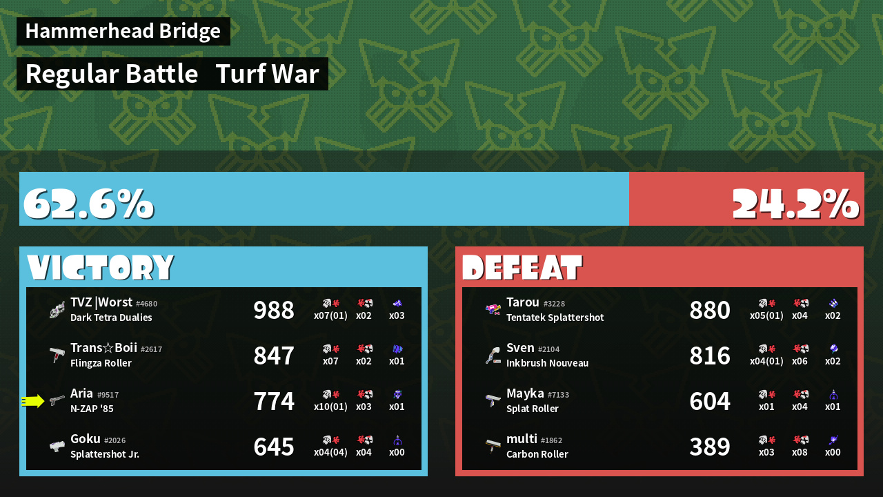 Kills / Deaths | 9 + 1 / 3 > Kill Ratio: 3.00 | ||