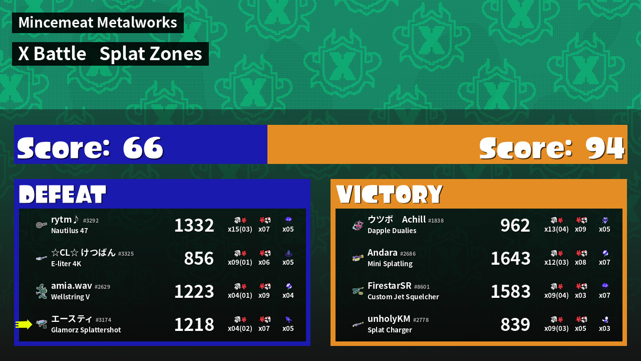 | Weapon | Glamorz Splattershot ( Burst Bomb / Kraken Royale) |