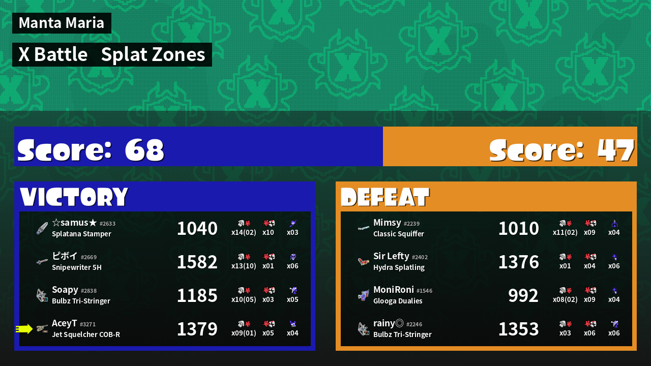 | Medals | #1 Splat Zone Inker #1 Splat Zone Hero First Splat! |
