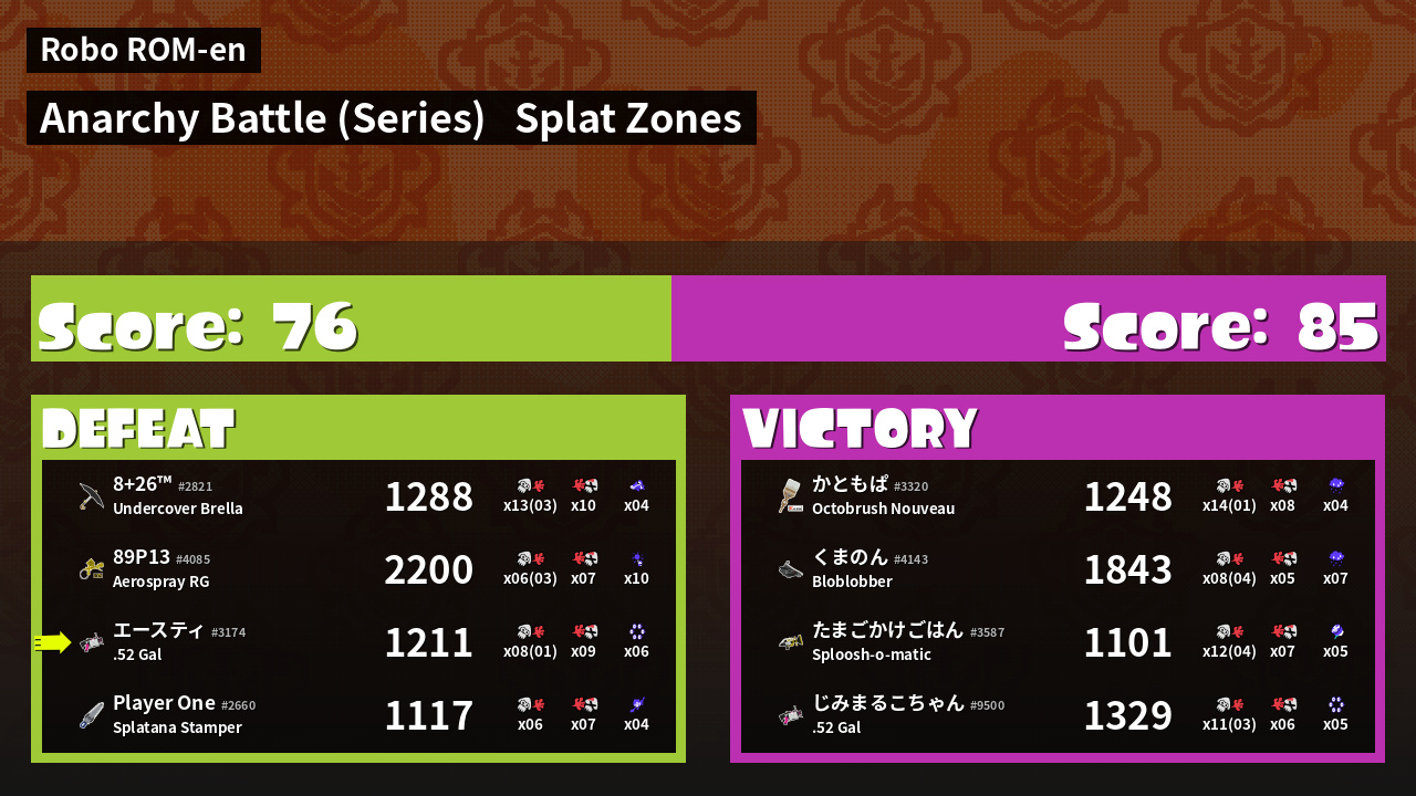 | Mode | Splat Zones - Anarchy Battle (Series) |