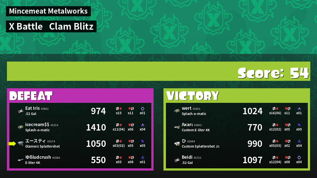 | Weapon | Glamorz Splattershot ( Burst Bomb / Kraken Royale) |