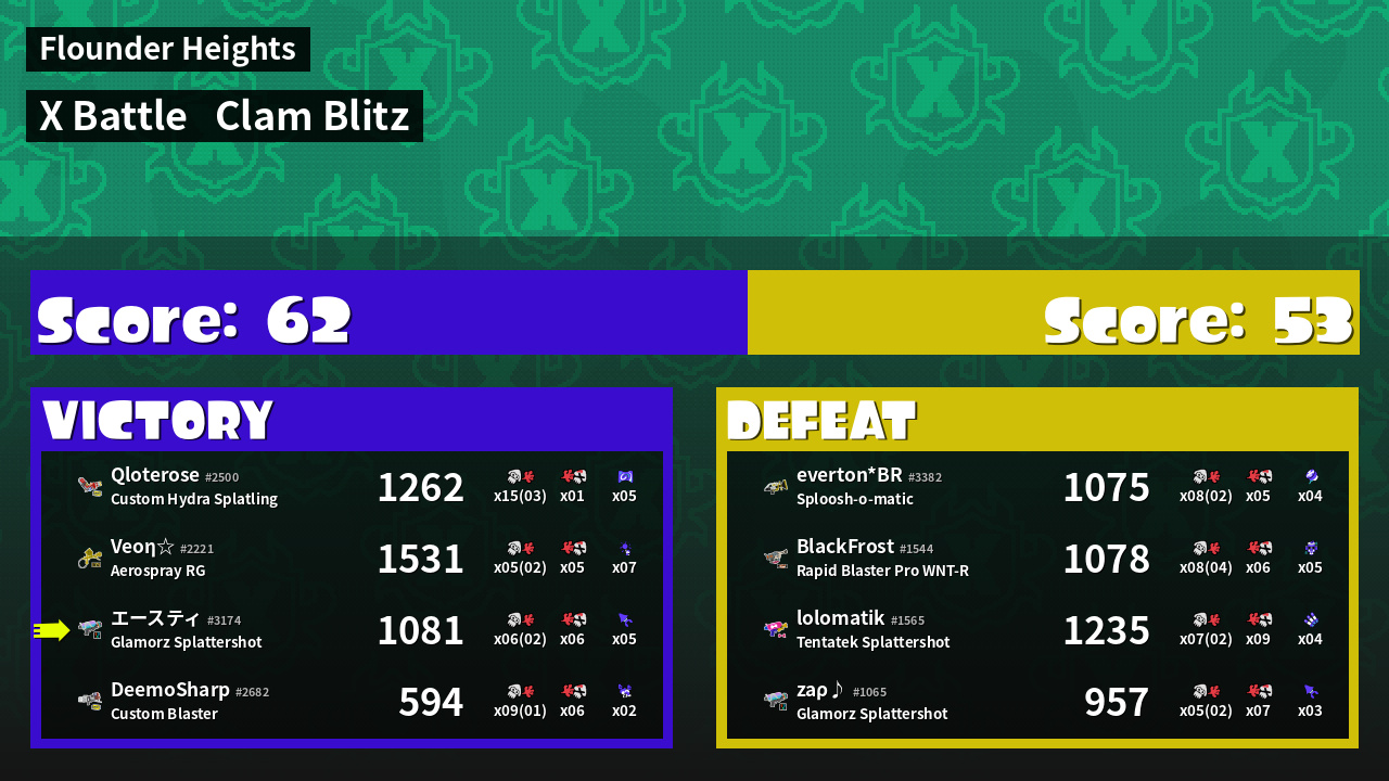 | Mode | Clam Blitz - X Battle |