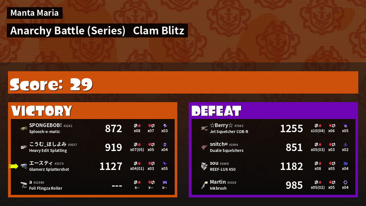| Mode | Clam Blitz - Anarchy Battle (Series) |