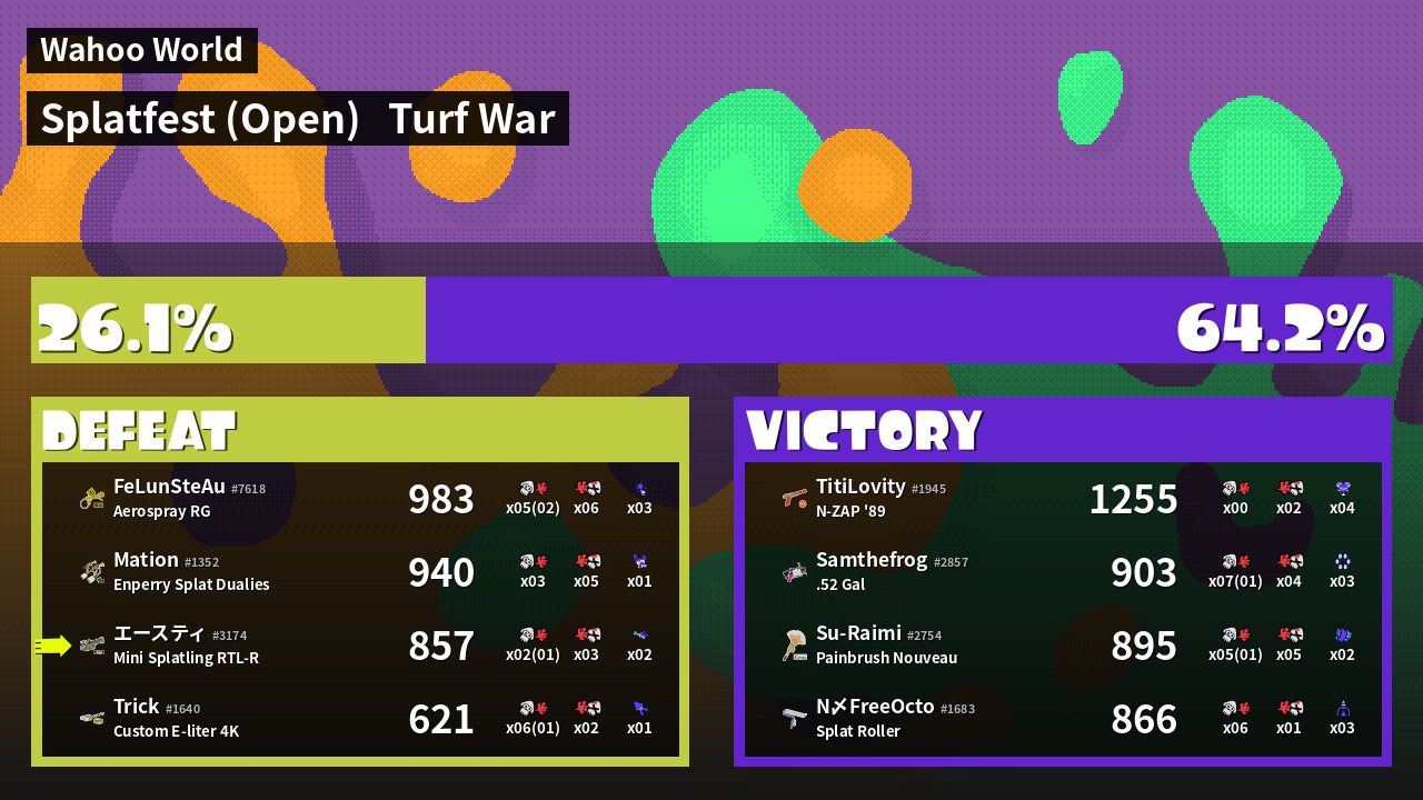 | Medals | #1 Damage Taker #1 Ink Consumer #2 Splat Assister |