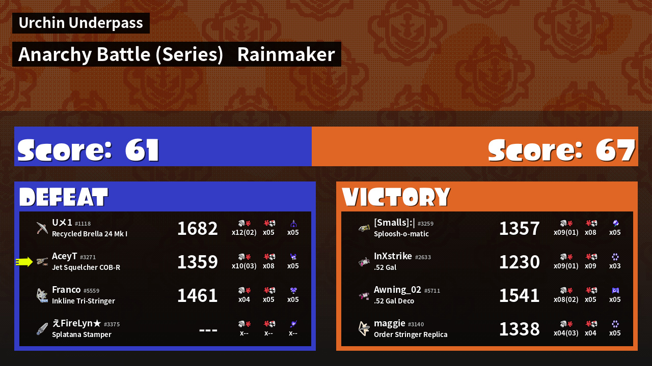 | Medals | #1 Splat Assister #1 Rainmaker Stopper #1 Triple Splashdown User |