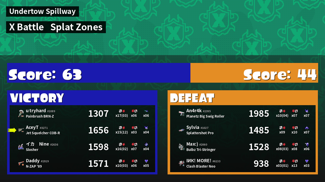 | Mode | Splat Zones - X Battle |
