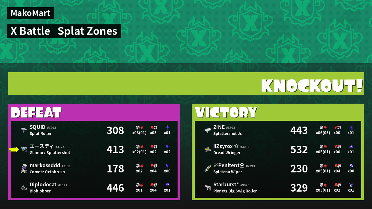| Mode | Splat Zones - X Battle |