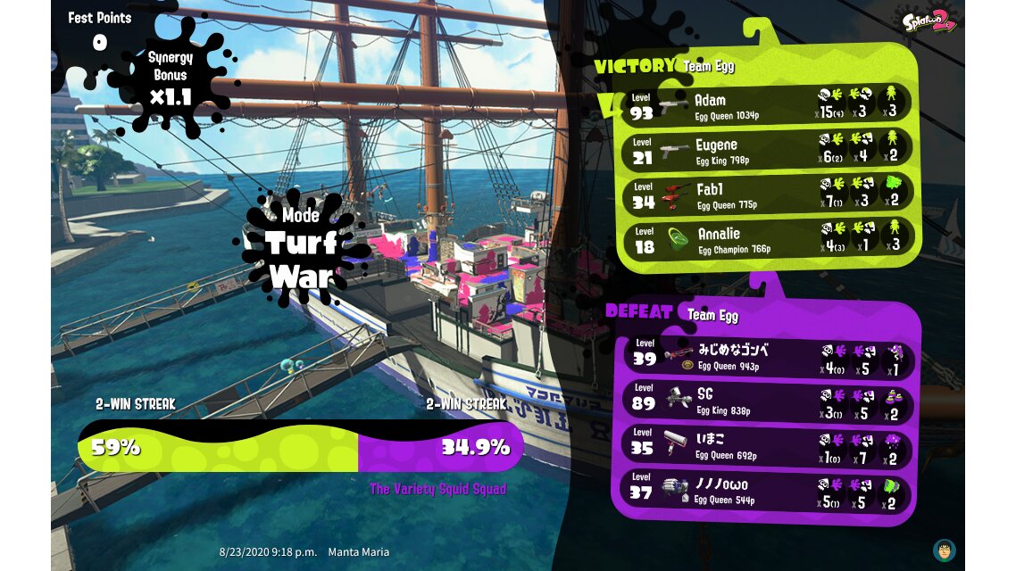 | Mode | Turf War - Splatfest (Team) | |||||||||||||||||||||||||||||||||||||