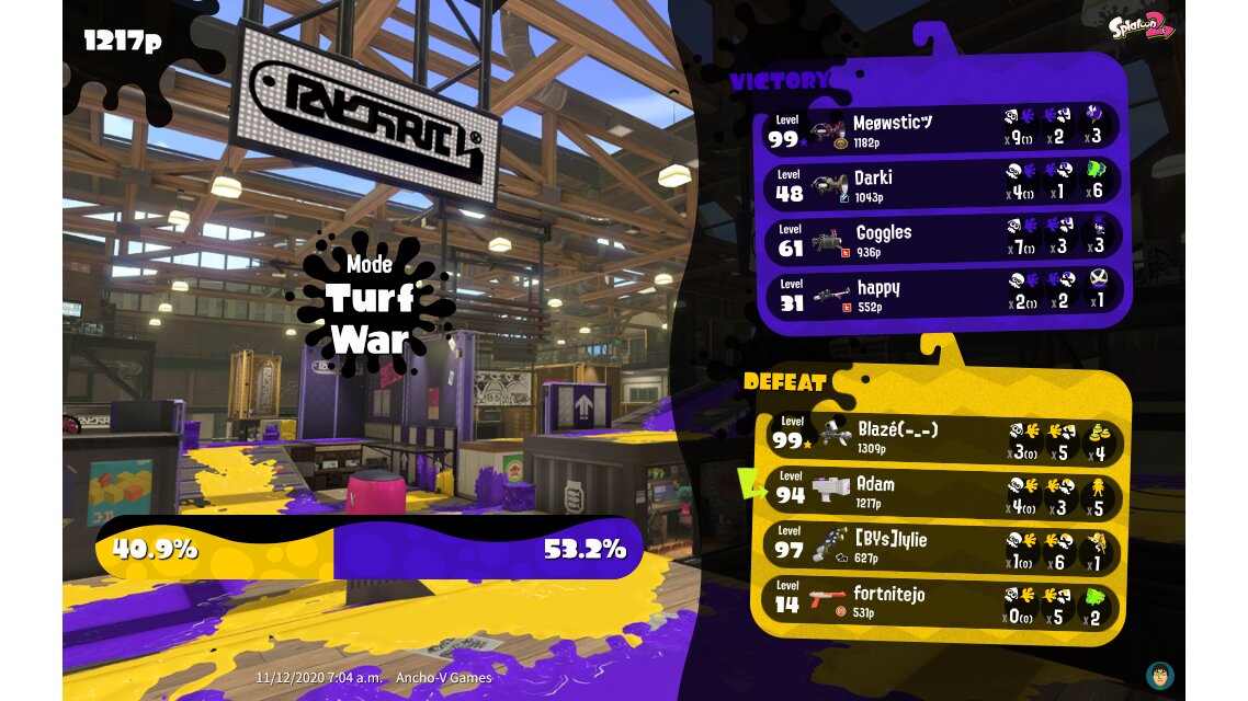 | Mode | Turf War - Regular Battle | ||||||||||||||||||||||||||||||||||