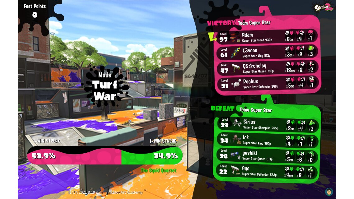 | Mode | Turf War - Splatfest (Team) | ||||||||||||||||