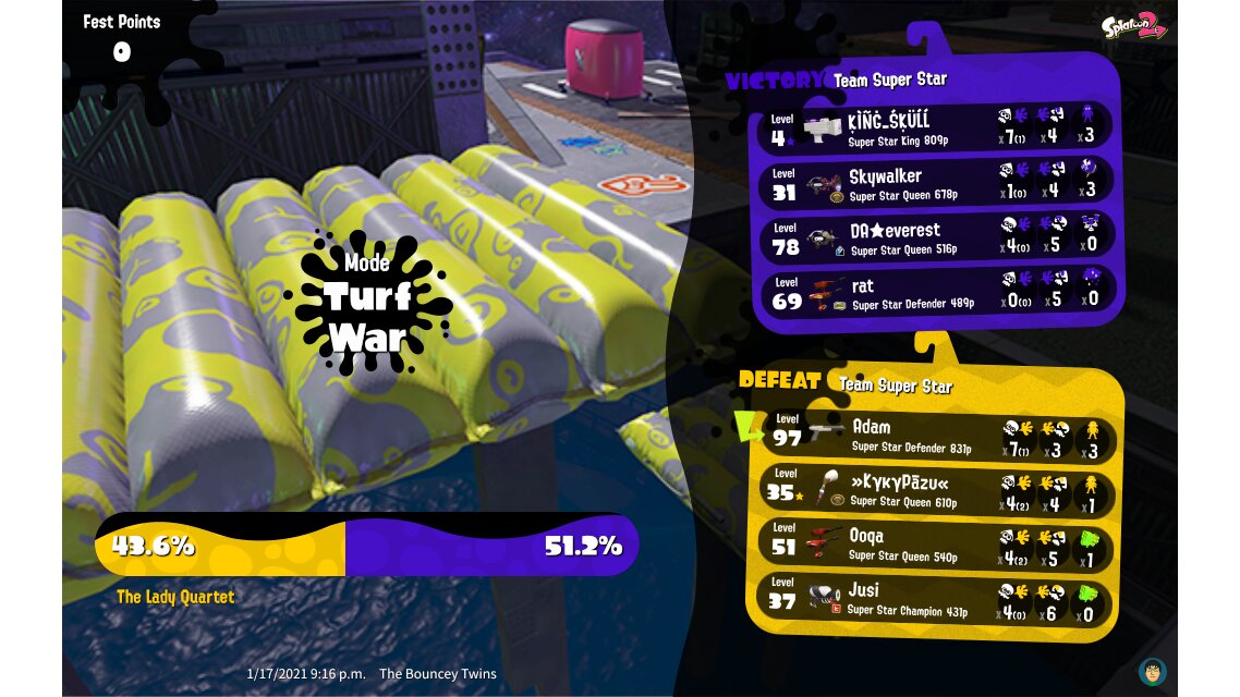 | Mode | Turf War - Splatfest (Team) | |||||||||||||||||||||||||||||||