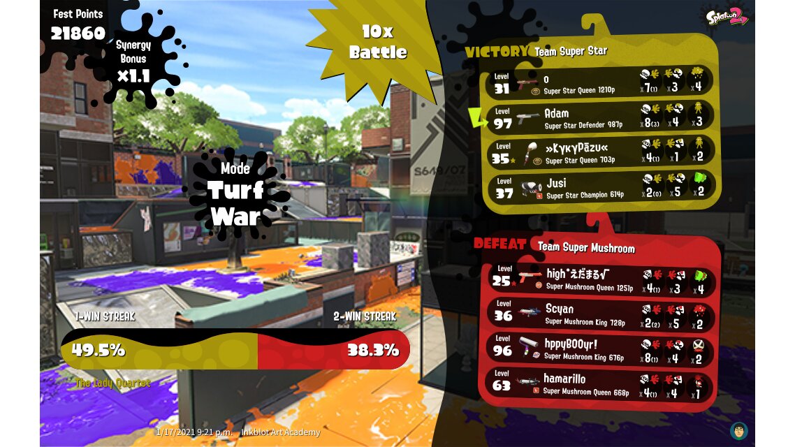 | Mode | Turf War - Splatfest (Team) | |||||||||||||||||||||||||||||||