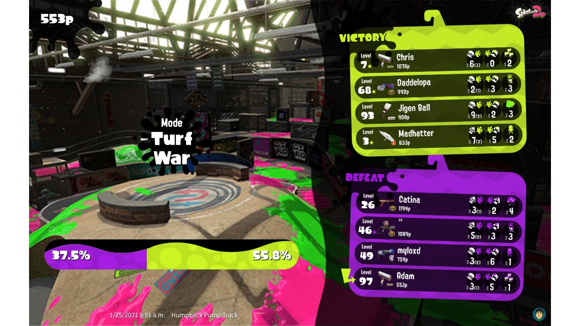 | Mode | Turf War - Regular Battle | |||||||||||||||||||||||||||||||