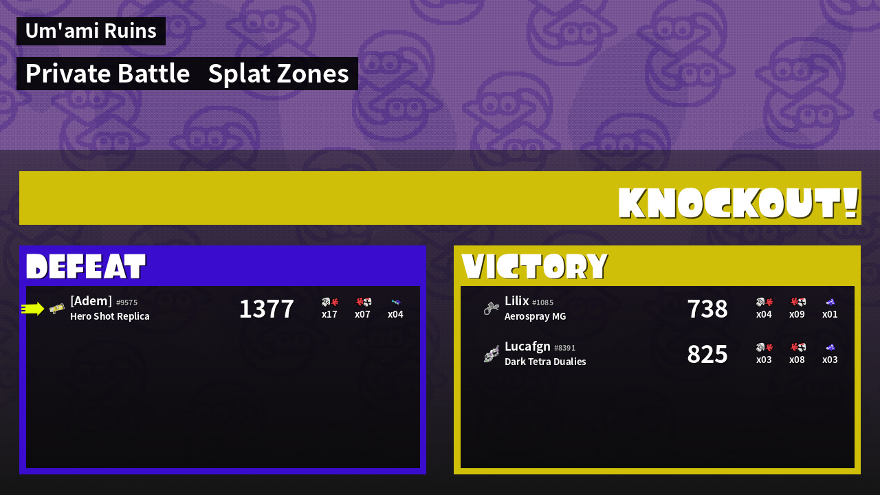 | Medals | #1 Overall Splatter #1 Splat Zone Inker #1 Splat Zone Guard | ||