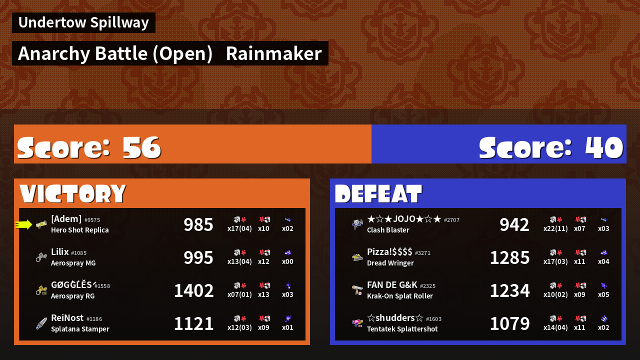 | Mode | Rainmaker - Anarchy Battle (Open) | ||