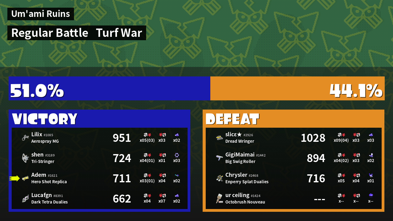 | Mode | Turf War - Regular Battle | ||