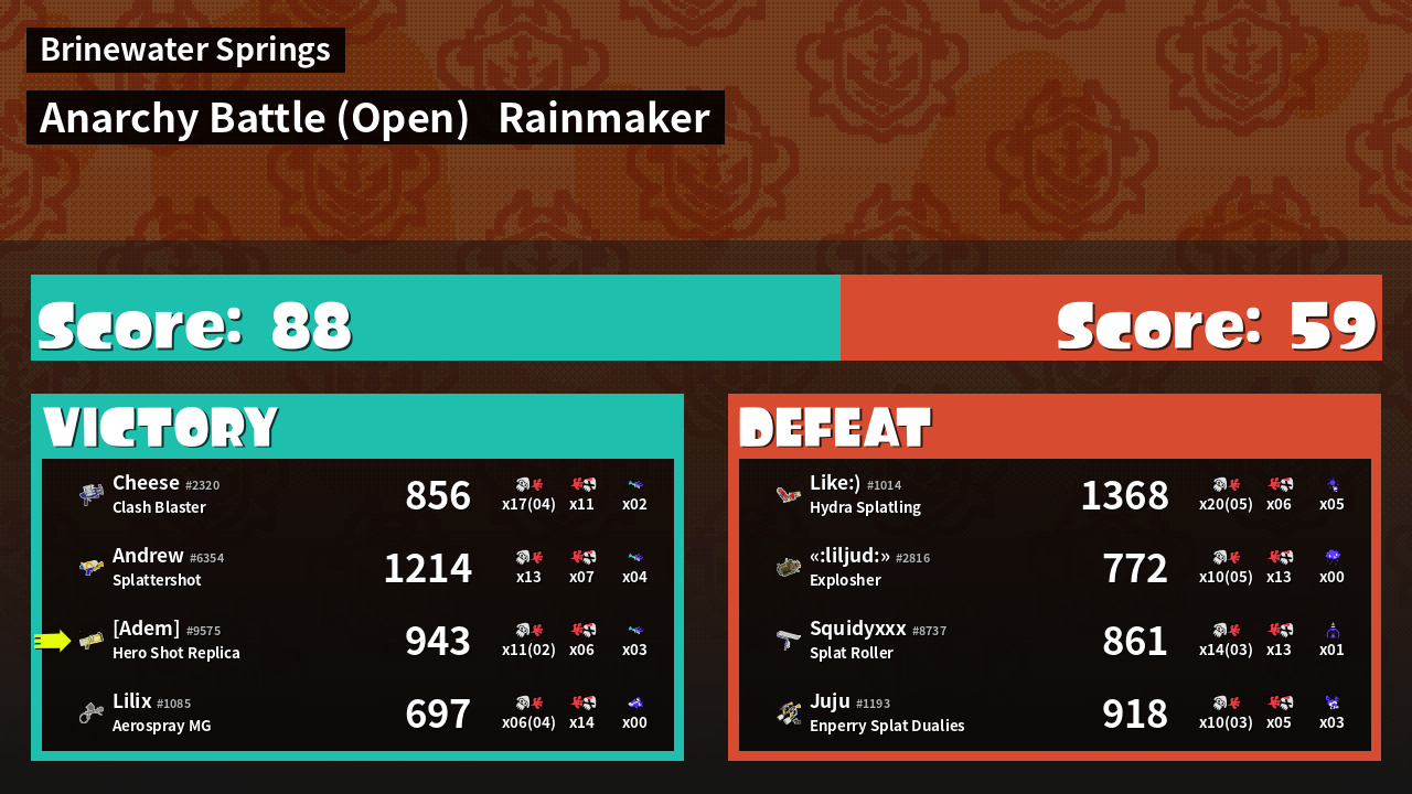 | Mode | Rainmaker - Anarchy Battle (Open) | ||