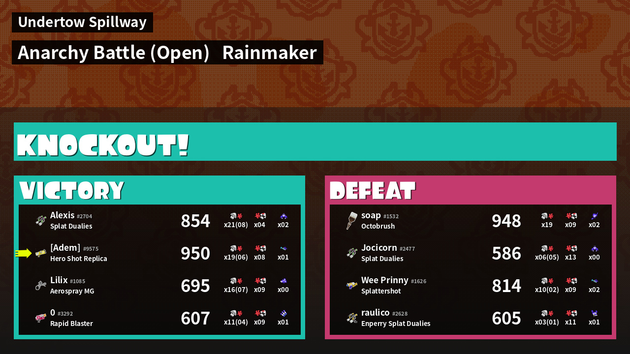 | Medals | #1 Turf Inker #1 Popular Target #1 Enemy Splatter | ||